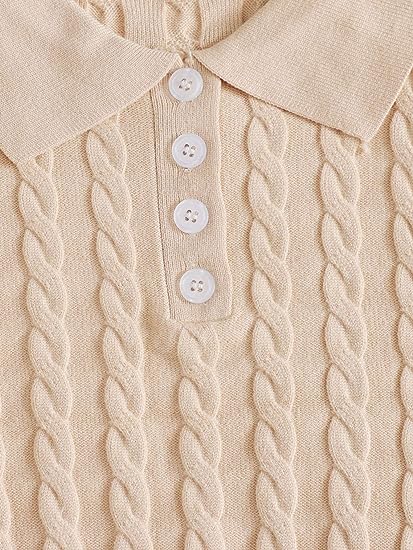 Women's Button Front Short Sleeve Cable Knit Crop Top Pullover Sweater